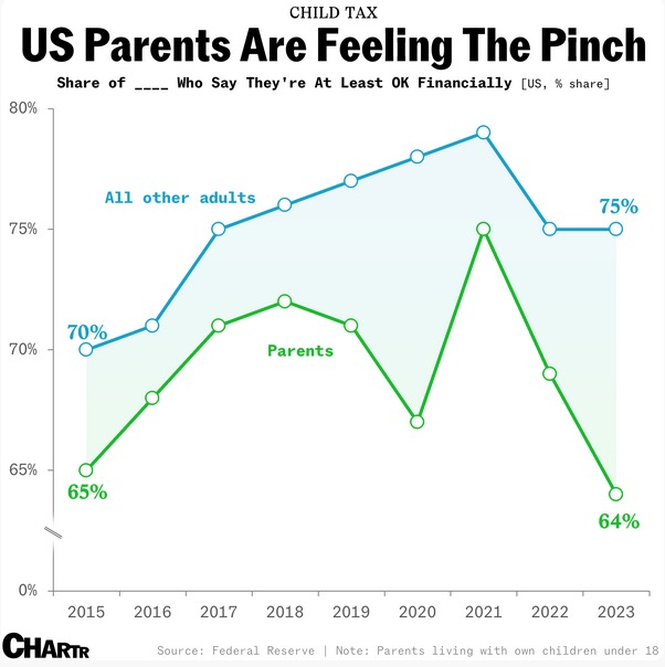 - American Parents Are Not OK – “American parents appear to be under more financial pressure than usual as inflation and rising childcare costs continue to bite, with less than two-thirds of American parents saying they’re doing “at least okay.”