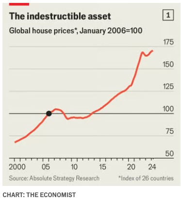 - Global Housing Prices – Global home prices are up 3% over the past year, and up 6.5% in America.