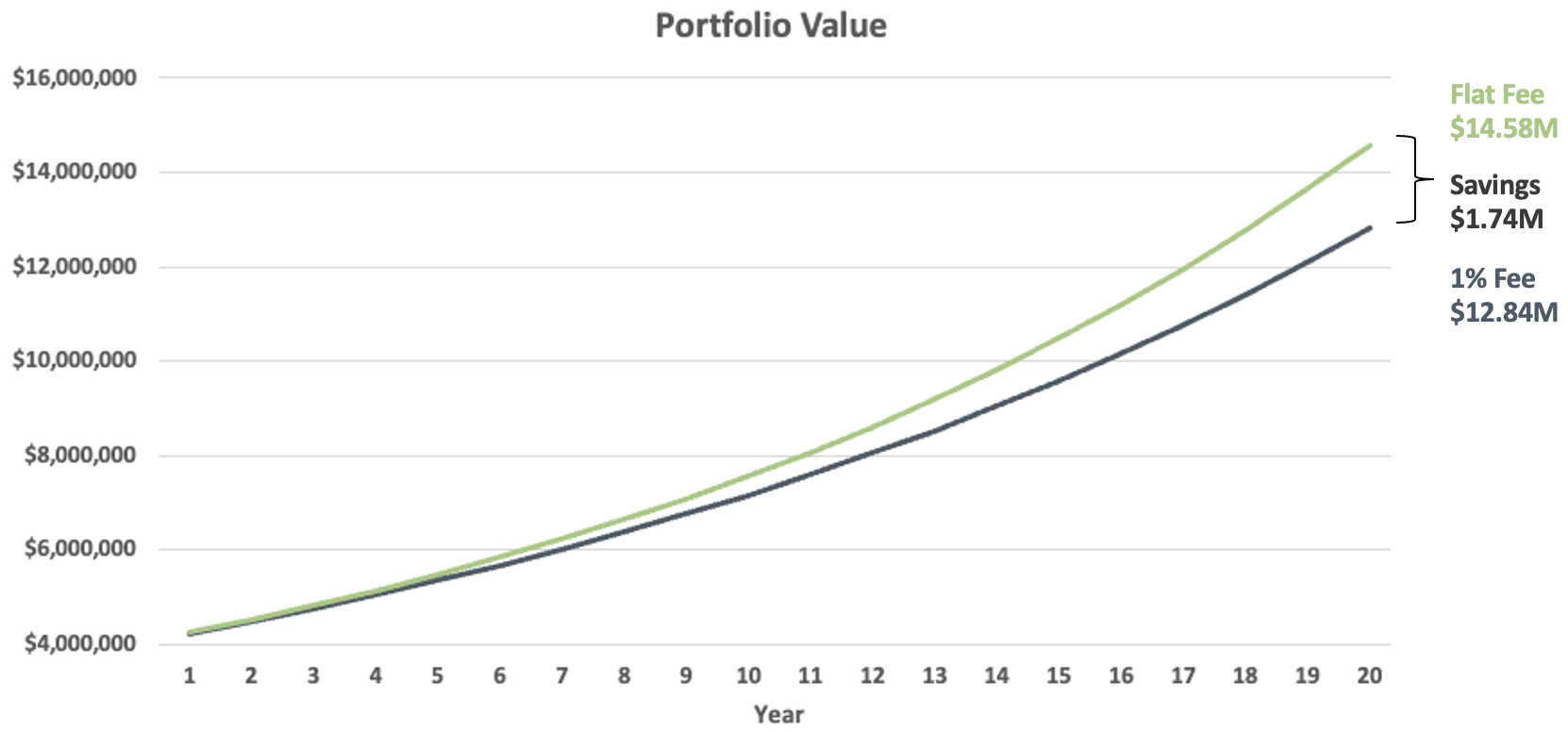 With our flat fee structure, your portfolio could be worth an additional $1.7 million after 20 years.